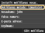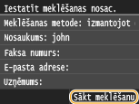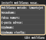 Lai meklētu adresātus, varat izmantot tādus kritērijus kā vārds, faksa numurs, e-pasta adrese, uzņēmuma nosaukums un organizācijas nodaļas nosaukums.