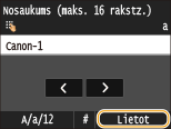 Izmantojot ciparu taustiņus, ievadiet meklēšanas mērķa rakstzīmju virkni un pieskarieties <Lietot>.