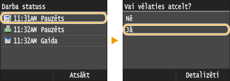Izvēlieties kopēšanas dokumentu ekrānā <Kopēšanas/drukas darba statuss>