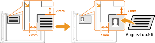 Varat izmantot <ID kartes kopija>, lai kartes priekšējo un aizmugurējo pusi kopētu uz vienas lappuses. Šī funkcija noder, kopējot autovadītāja apliecību vai ID karti.