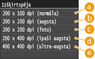 Varat izvēlēties savam dokumenta veidam piemērotu izšķirtspēju. Jo lielāka ir izšķirtspēja, jo skaidrāki ir attēli, taču to sūtīšanai nepieciešams vairāk laika.