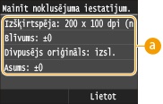 Noklusējuma iestatījumi ir tie iestatījumi, kas tiek parādīti ikreiz, kad ieslēdzat iekārtu vai nospiežat