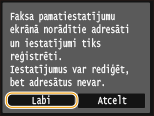 Kad iestatījumi ir reģistrēti, adresātus vairs nevar mainīt. Lai mainītu adresātu, izdzēsiet iestatījumus un pēc tam reģistrējiet tos vēlreiz.