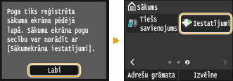 Ja izvēlaties <Jā>, tiek parādīts ziņojums. Apskatiet ziņojumu un tad pieskarieties <Labi>. Reģistrēto iestatījumu kombinācija tiek pievienota ekrānam Sākums kā īsinājumpoga.