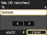 Ievadiet tēmu, izmantojot ciparu taustiņus, un pieskarieties <Lietot>.