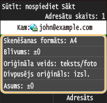 Ja vēlaties reģistrēt iestatījumu kombināciju, ko izmantot pēc nepieciešamības:Bieži izmantotu skenēšanas iestatījumu reģistrēšana (e-pasts/I-Fax/koplietojama mape/FTP serveris)