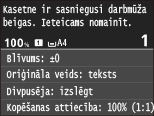 Ja iekārta saņem faksa dokumentu, vai ir iestatīta automātiska pārskatu drukāšana, saņemtie faksa dokumenti un pārskati tiks glabāti iekārtā, lai pēc izdrukāšanas tie nebūtu blāvi. Lai turpinātu drukāšanu, pat ja kasetnē atlikušais toneris ir gandrīz beidzies, iestatījumam <Turpināt drukāšanu, ja kasetnē ir maz tintes> izvēlieties vērtību <Iesl.>. Turpināt drukāšanu, ja kasetnē ir maz tintes