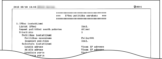Izdrukājiet IPSec politiku sarakstu, lai pārbaudītu iekārtā reģistrēto politiku sarakstu un IPSec iestatījumus.
