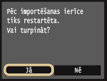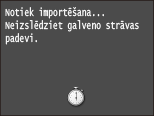 Tiek sākta importēšana. Kad datu importēšana ir pabeigta, iekārta automātiski restartējas.
