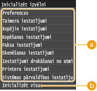 <Tīkla iestatījumi> <Inicializēt tīkla iestatījumus> <Jā> Restartējiet iekārtu |