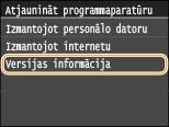 Varat pārbaudīt programmaparatūras versiju no iekārtas darbības paneļa. Pēc programmaparatūras atjaunināšanas beigām pārliecinieties, ka atjauninājums veikts pareizi. Programmaparatūras versijas pārbaudīšana