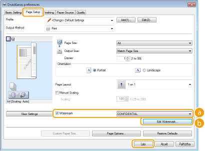 Atzīmējiet izvēles rūtiņu [Watermark] (Ūdenszīme)