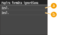 Izvēlieties, vai jāpārslēdzas no drukāšanas uz A4 formāta papīra uz drukāšanu uz Letter papīra formāta papīra un pretēji, ja ir ievietots tikai viena formāta papīrs. Piem., ja drukājat Letter formāta dokumentu, bet iekārtā ir ievietots tikai A4 formāta papīrs, tad iekārta drukās dokumentu uz A4 formāta papīra.