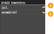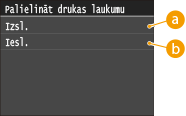 Pieskaroties <Iesl.>, var drukāt tonera taupīšanas režīmā. Izvēlieties <Iesl.>, ja vēlaties pārbaudīt izkārtojumu vai citas ar izskatu saistītas īpašības pirms apjomīga darba drukāšanas.