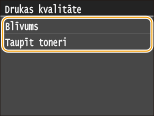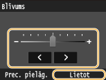 / un pēc tam pieskarieties <Lietot>. Ņemiet vērā — ja iestatījumam <Taupīt toneri> norādīta vērtība <Iesl.>, šo vienumu nevar iestatīt.![]() ![]() Tonera blīvuma precīza pielāgošana