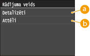 Varat izvēlēties drukāšanas metodi, lai optimālas attēla kvalitātes iegūšanai attēlotu pustoņus (vidējo diapazonu starp attēla gaišākajiem un tumšākajiem laukumiem). Pieskarieties <Gradācija> vai <Stohastiskais rastrs>.