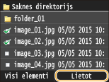 ![]() ![]() Ja pirms pieskaršanās <Visi elementi> esat jau atlasījis kādu failu, varat atlasīt tikai tā paša formāta failus.