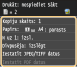 *2 Iestatot <Drošās drukas iestatījumi> pozīcijā <Izsl.>, var drukāt līdz 50 MB datu (Drošās drukas iestatījumi).