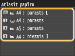 ![]() <Divpusējs> var nebūt pieejama dažiem papīra formātiem un tipiem. Papīrs