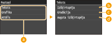 Ja vēlaties precīzi pielāgot tonera blīvumu, regulējot trīs blīvuma līmeņus — augsts, vidējs un zems — veiciet tālāk norādītās darbības.