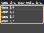<Izvēlne>  <Skenēšanas iestatījumi>  <Izvades faila attēla iestatījumi>  <Gamma vērtība YCbCr nosūtītajiem darbiem>  Izvēlieties gamma vērtību