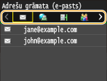 Adrešu grāmatā varat norādīt adresātu, izvēloties to reģistrēto adresātu sarakstā vai meklējot pēc to adresātu vārda/uzvārda vai nosaukuma, kuriem ir norādīti saņēmēju vārdi.