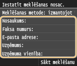 Ja jūsu birojā ir instalēts LDAP serveris, adresātu varat norādīt, izmantojot lietotāja informāciju serverī. Piekļūstiet LDAP serverim, izmantojot iekārtu, lai meklētu atbilstošu lietotāja informāciju un norādītu to kā adresātu.