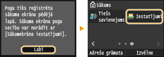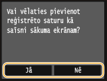 Ja izvēlaties <Jā>, tiek parādīts ziņojums. Apskatiet ziņojumu un tad pieskarieties <Labi>. Reģistrēto iestatījumu kombinācija tiek pievienota ekrānam Sākums kā īsinājumpoga.