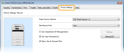 Atzīmējiet izvēles rūtiņu [Use Department ID Management] (Lietot nodaļas ID pārvaldību). Faksa draiveris