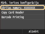 Varat arī pārbaudīt, izmantojot  <Ierīces statuss>  <Sērijas numurs>.