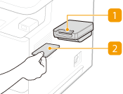 Kortelių kontrolės sistema supaprastina skyriaus ID valdymo prisiregistravimo procedūrą, vietoje poreikio įvesti skyriaus ID naudojant valdymo kortelę. Galite prisiregistruoti prie aparato įkišdami valdymo kortelę ir išsiregistruoti ją ištraukdami.