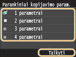 Pasirinkite žymės langelį visiems parametrams, kurie turi būti rodomi Pagrindinis ekrane, ir bakstelėkite <Taikyti>.