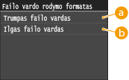 Pasirinkite <Trumpas failo vardas> arba <Ilgas failo vardas>