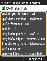 Jei norite užregistruoti parametrų derinį, naudojamą prireikus:Dažnai naudojamų nuskaitymo parametrų registravimas (el. paštas / internetinis faksas / bendrai naudojami aplankai / FTP serveris)