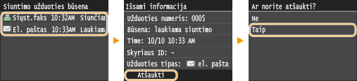 iš karto norite atšaukti dokumentų siuntimą, ekrane bakstelėkite <Atšaukti> arba valdymo pulte paspauskite