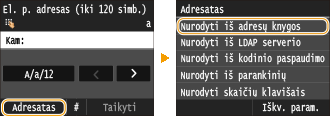 Prieš naudodami šią funkciją, adresų knygelėje turite užregistruoti adresatus. Įregistravimas adresų knygelėje