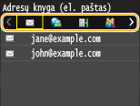 Naudojant adresų knygelę galima nurodyti adresatą pasirenkant iš užregistruotų adresatų sąrašo arba ieškant adresato vardo pagal gavėjų vardus.