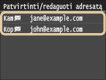 / , kad perjungtumėte nurodytus adresatus. Rodykite norimą naikinti adresatą ir paspauskite . |