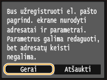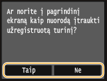 Jei pasirenkate <Taip>, rodomas pranešimas. Patikrinkite pranešimą ir bakstelėkite <Gerai>. Užregistruotų parametrų kombinacija įtraukiama į Pagrindinis ekraną kaip nuorodos mygtukas.