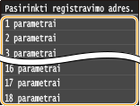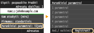 Norėdami redaguoti arba naikinti parametrus, eikite į <Nuskaityti>  <El. paštas>/<I-faksas>/<Failas>  <Parankiniai parametrai>  <Red./ naikinti>  <Redaguoti> arba <Naikinti> ir tada vykdykite žemiau aprašytus veiksmus.