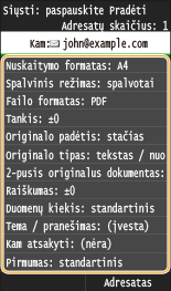 Adresatai negali būti keičiami, kai parametrai yra užregistruoti. Norėdami keisti adresatą, panaikinkite parametrus ir iš naujo juos užregistruokite.