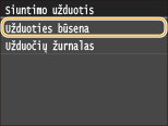 ![]() <Siuntimo užduoties žurnalas>Rodomas išsiųstų dokumentų sąrašas. Sėkmingai išsiuntus dokumentą, rodoma <Gerai>, o jei dokumento nepavyko išspausdinti, nes jis buvo atšauktas arba įvyko klaida, rodoma <Klaida>.