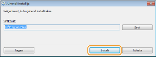 Puhastage kõik kastikesed, välja arvatud [Manuals] (Juhendid), ning klõpsake [Install] (Installi).
