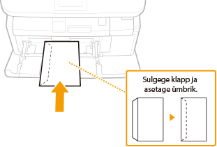 Asetage ümbrikud (Monarch, COM10, DL või ISO-C5) püstpaigutusega (lühike serv seadme poole) ja liimita külg (esikülg) üleval. Ümbrike tagaküljele ei saa printida.