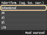 Kui näidikul ei kuvata sisestatud paberi formaati, puudutage valikut <Muud suurused>.