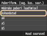 Kui näidikul ei kuvata sisestatud paberi formaati, puudutage valikut <Muud suurused>.