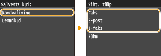 Vastavalt salvestatavale aadressile vajutage <Faks>/<E-post>/<I-faks>.