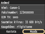 Pärast sihtkohtade salvestamist võite muuta salvestatud teavet. Näiteks saate muuta salvestatud sihtkoha faksi numbrit või nime, muuta faksi number e-postiks, muuta koodvalimise numbrit, jne.