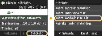 Kui soovite sihtkohad sihtkohaloendi kuvamiseta lihtsalt ja kiirelt kustutadaEnne sätte <Sihtkoht> valimist 1. juhises võite määratud sihtkohtade vahetamiseks vajutada klahvi