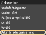<Menüü> <Faksiseaded> <Edastamisseaded> <Luba edastamisseaded> <Sees>  Valige aadressiraamatust edasisaatmise sihtkoht
